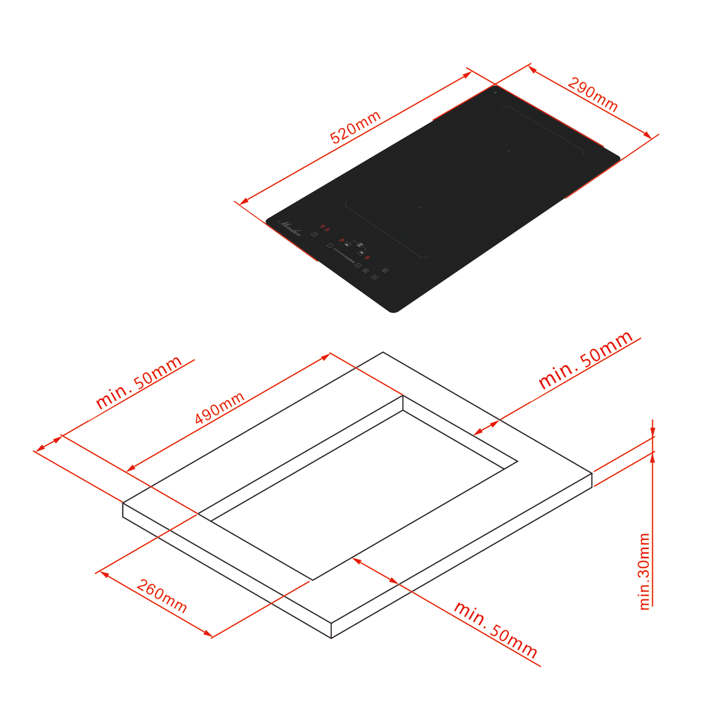 поверхность варочная стеклокерамическая индукционная, 30 см, черный, прямой край