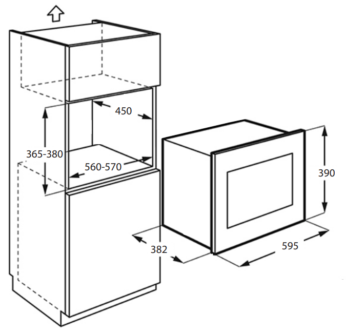 микроволновая печь встраиваемая, 25 л, 59,5х39х38,2 см, черный