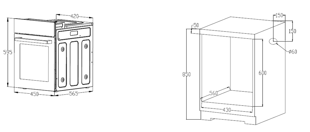 шкаф духовой электрический, 45 см, черный