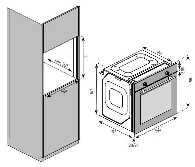 Ширина корпуса электроприбора. Особенно важно точно знать точную допустимую ширину для встраиваемой техники.