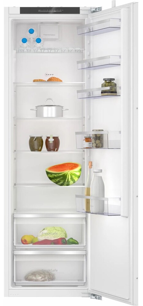 холодильник однокамерный встраиваемый, 310 л, класс энергопотребления Е, 54,8х54,1х177,2 см. Холодильник однодверный, вентилируемый холодильник, ящики Fresh Safe, электронное управление со светодиодным дисплеем, плоские петли, общий объем 310 л