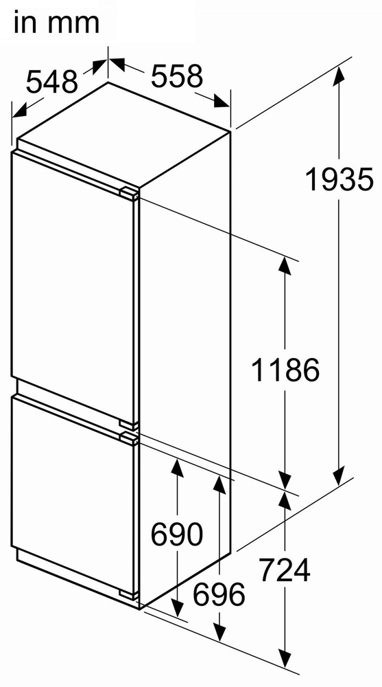 холодильник-морозильник встраиваемый, 290 л, класс энергопотребления D, No Frost, 55,8х54,8х193,5 см. Встраиваемый комбинированный холодильник, инверторный компрессор, холодильник с Eco Air Flow, Fresh Safe + Fresh Safe <0> C°, электронное управление со светодиодным дисплеем, Flex Cooling, плоские петли