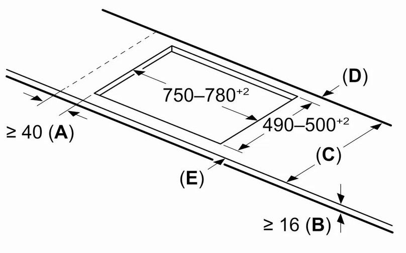 Характер огранки фаски на внешней стороне варочной панели. Металлические рамки предотвращают забивание монтажных швов крошками и пылью.