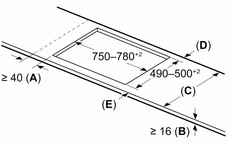 Характер огранки фаски на внешней стороне варочной панели. Металлические рамки предотвращают забивание монтажных швов крошками и пылью.
