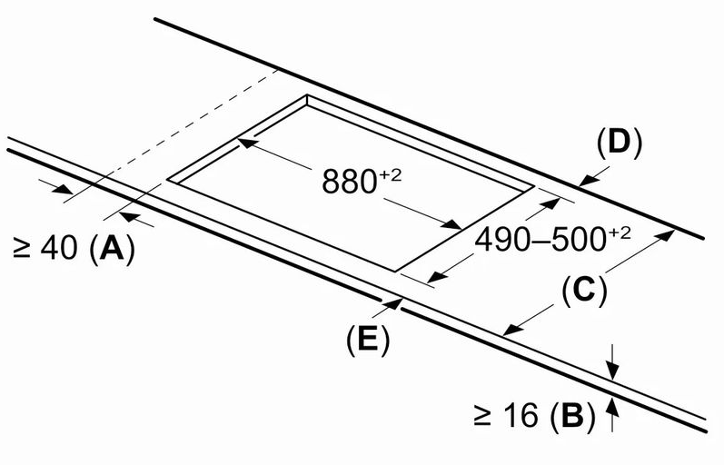 Характер огранки фаски на внешней стороне варочной панели. Металлические рамки предотвращают забивание монтажных швов крошками и пылью.