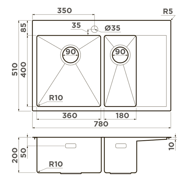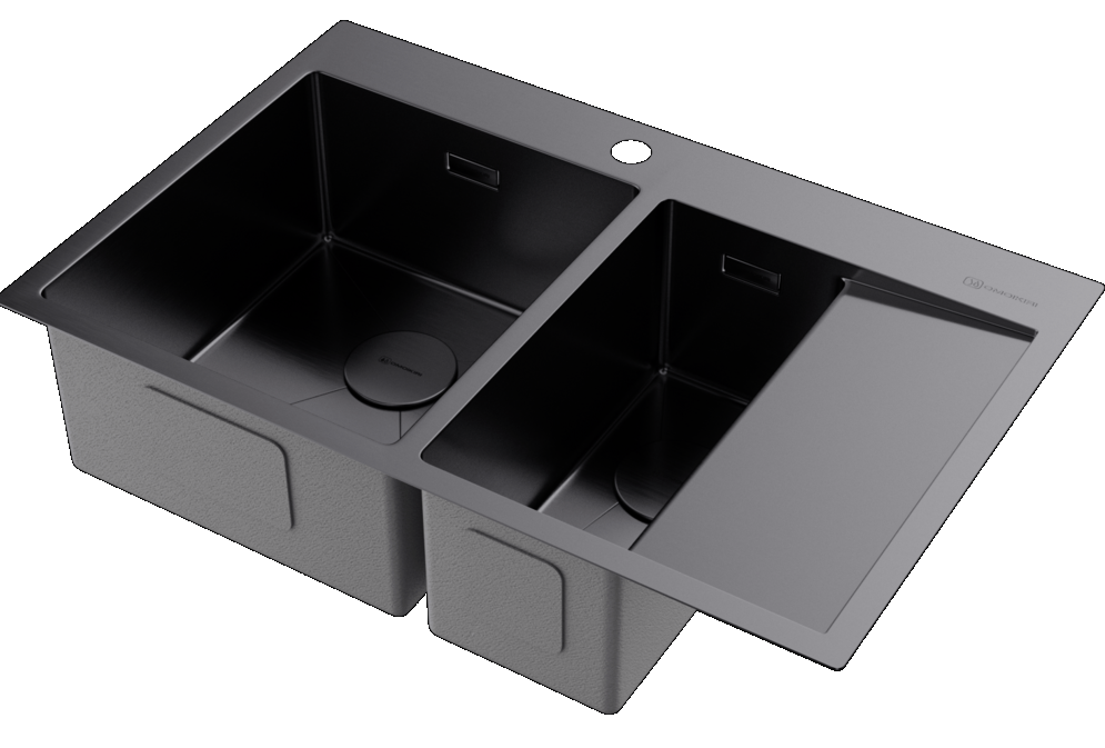 мойка, нержавеющая сталь, 780x510 мм, вороненая сталь, чаша слева