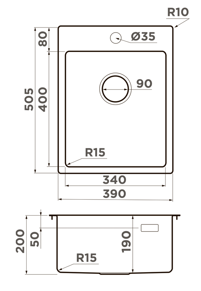мойка, нержавеющая сталь, 390x505 мм, нержавеющая сталь