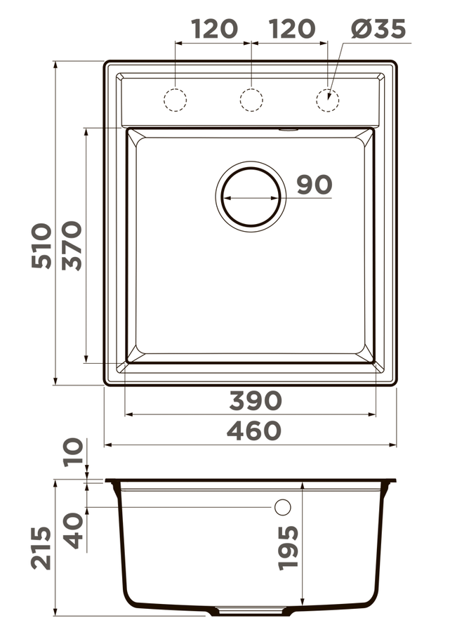 Расстояние от дна до верхней кромки чаши мойки. Оптимальная глубина — 15-18 см. Чем глубже мойка, тем меньше брызг попадет наружу.