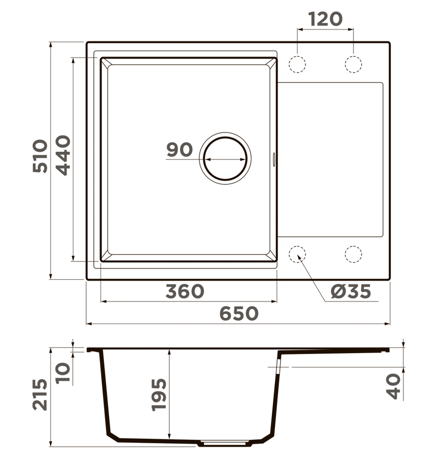 Расстояние от дна до верхней кромки чаши мойки. Оптимальная глубина — 15-18 см. Чем глубже мойка, тем меньше брызг попадет наружу.