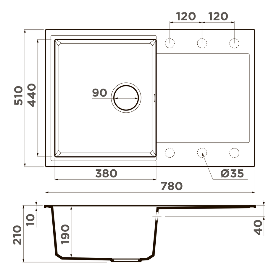 Расстояние от дна до верхней кромки чаши мойки. Оптимальная глубина — 15-18 см. Чем глубже мойка, тем меньше брызг попадет наружу.