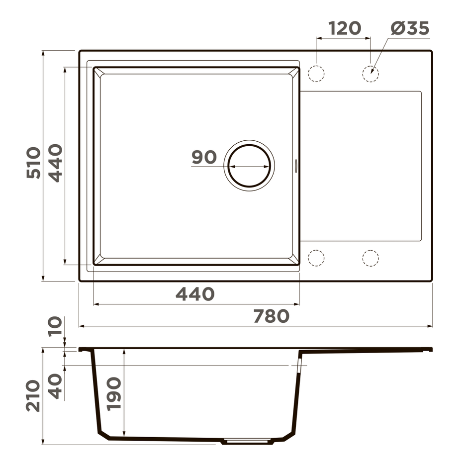 Расстояние от дна до верхней кромки чаши мойки. Оптимальная глубина — 15-18 см. Чем глубже мойка, тем меньше брызг попадет наружу.