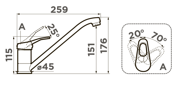смеситель для кухни, латунь, поворотный излив, ленинградский серый