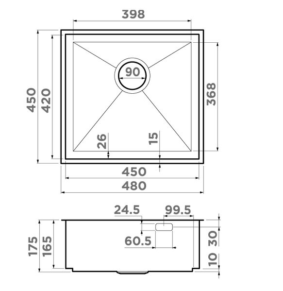 мойка, нержавеющая сталь, 450х480 мм, вороненая сталь