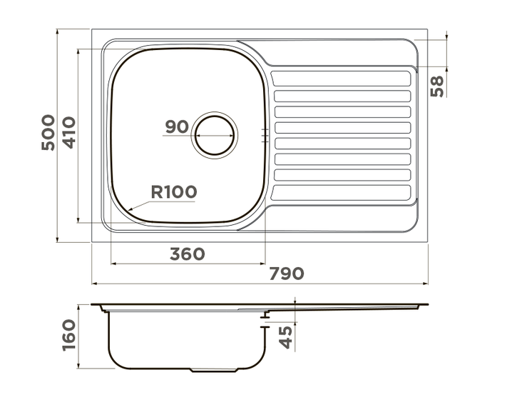 мойка, нержавеющая сталь, 500х790 мм, нержавеющая сталь