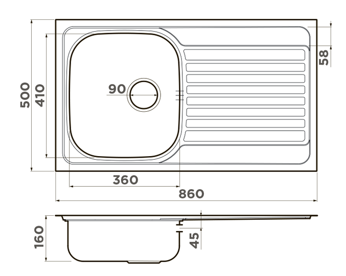 мойка, нержавеющая сталь, 500х860 мм, нержавеющая сталь