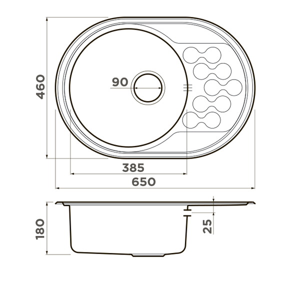Расстояние от дна до верхней кромки чаши мойки. Оптимальная глубина — 15-18 см. Чем глубже мойка, тем меньше брызг попадет наружу.