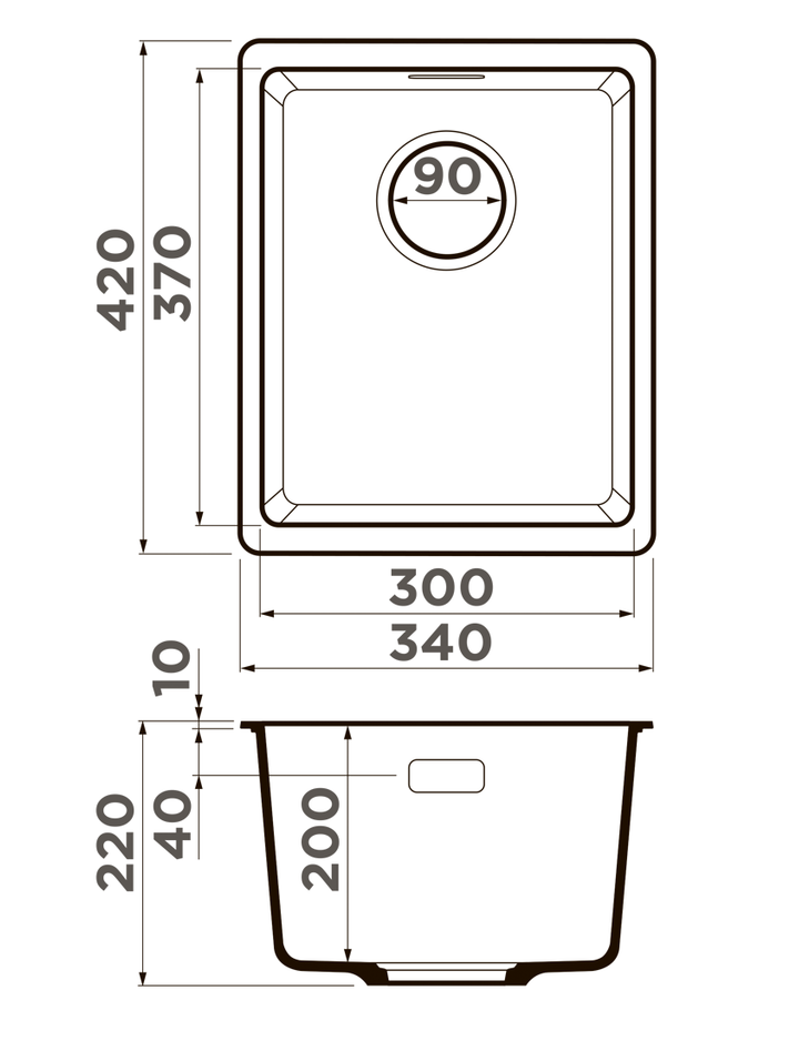 мойка, гранит, 340x420 мм, черный