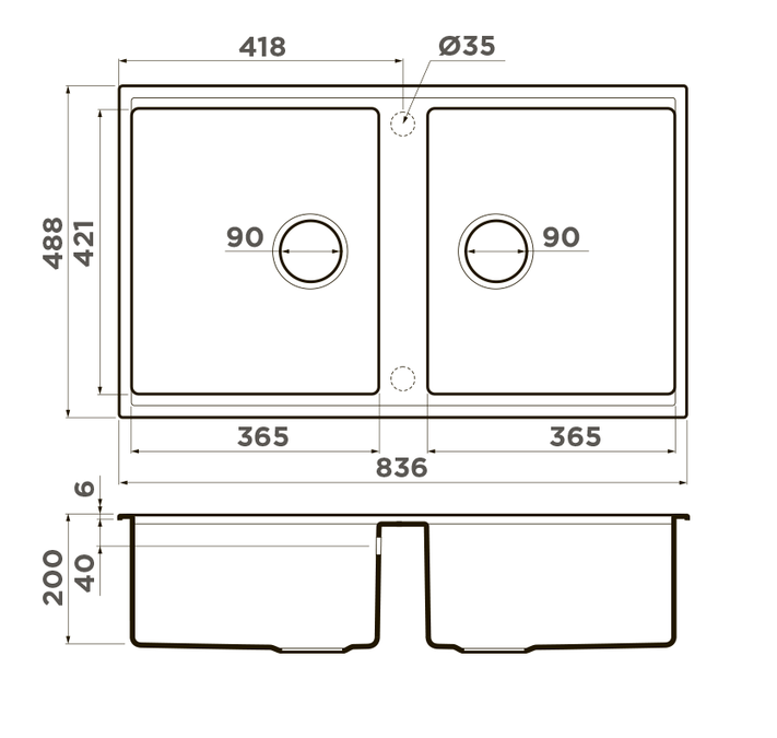 Расстояние от дна до верхней кромки чаши мойки. Оптимальная глубина — 15-18 см. Чем глубже мойка, тем меньше брызг попадет наружу.
