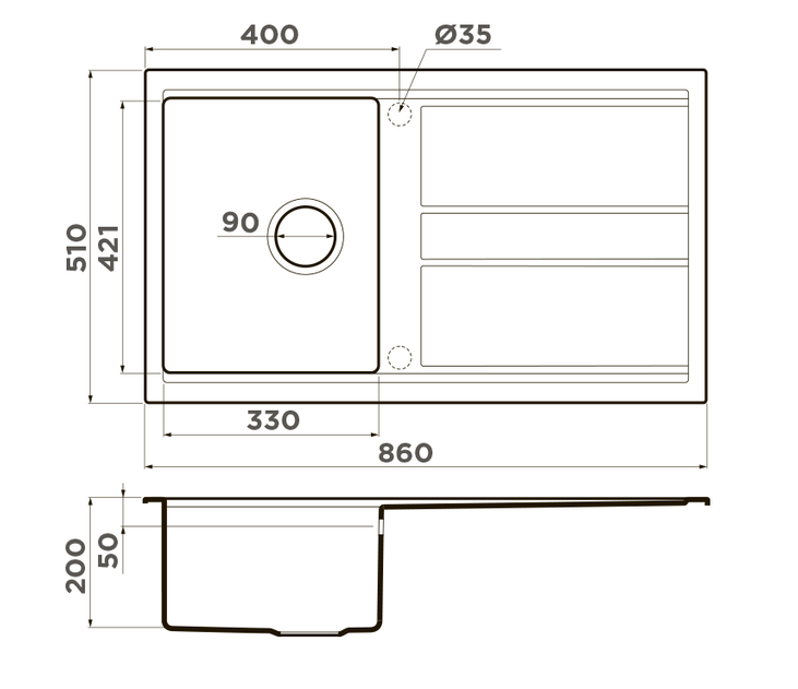 Наличие и расположение крыла кухонной мойки — слева, справа или с обеих сторон. Крыло оборачиваемой мойки можно расположить с любой стороны.