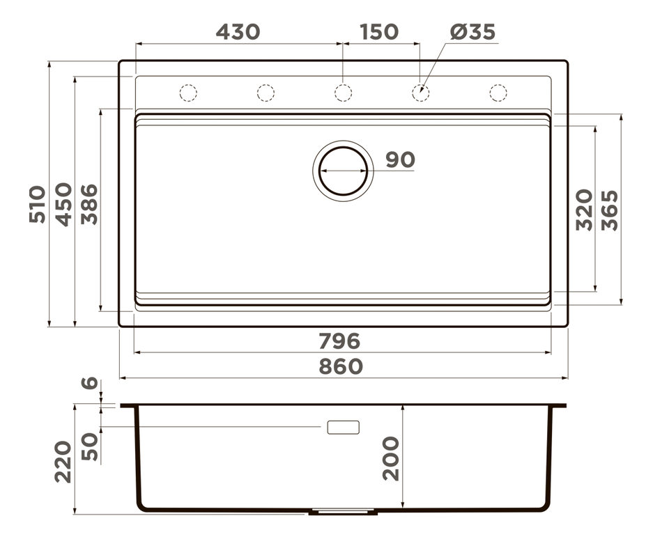 Расстояние от дна до верхней кромки чаши мойки. Оптимальная глубина — 15-18 см. Чем глубже мойка, тем меньше брызг попадет наружу.