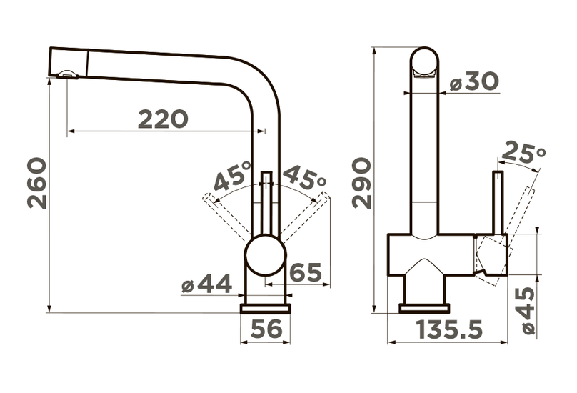смеситель для кухни, нержавеющая сталь, высокий поворотный излив, нержавеющая сталь