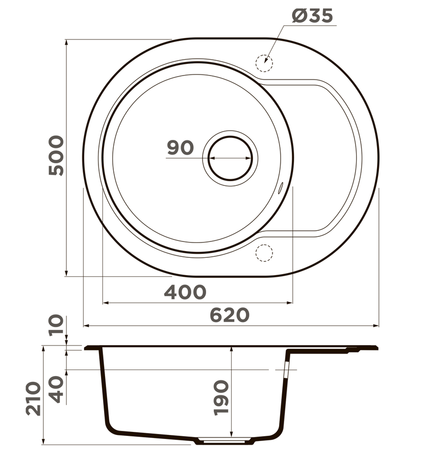 Расстояние от дна до верхней кромки чаши мойки. Оптимальная глубина — 15-18 см. Чем глубже мойка, тем меньше брызг попадет наружу.