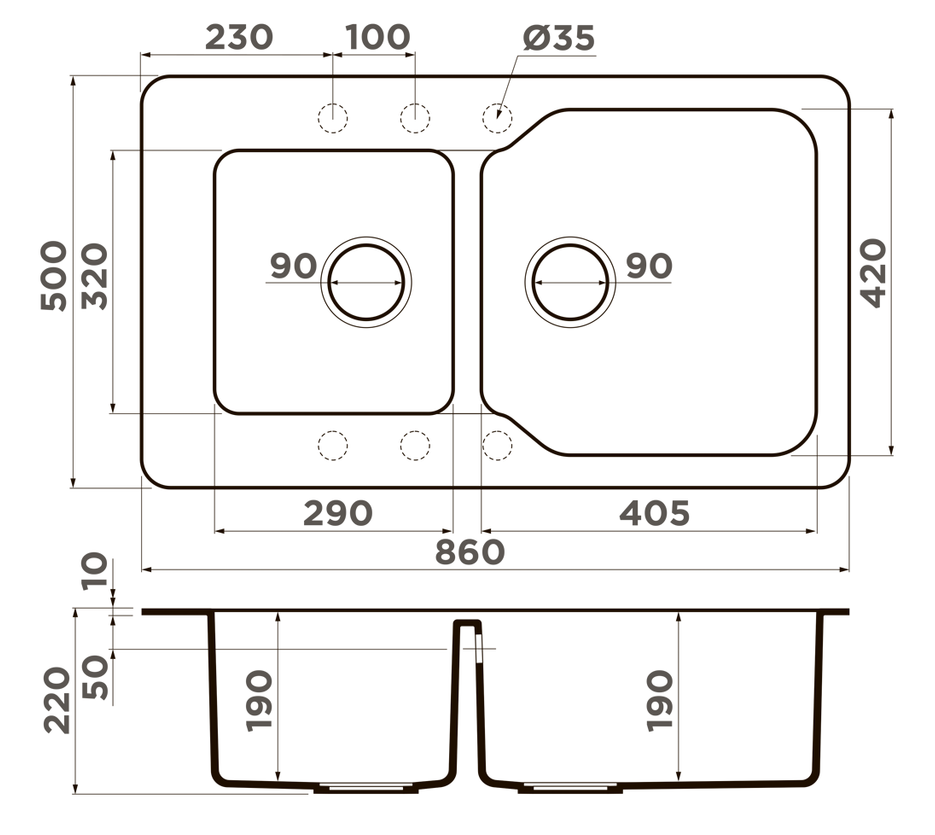 мойка, гранит, 860x500 мм, ваниль