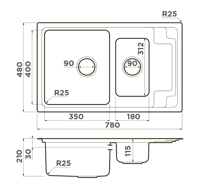 мойка, нержавеющая сталь, 780x480 мм, нержавеющая сталь