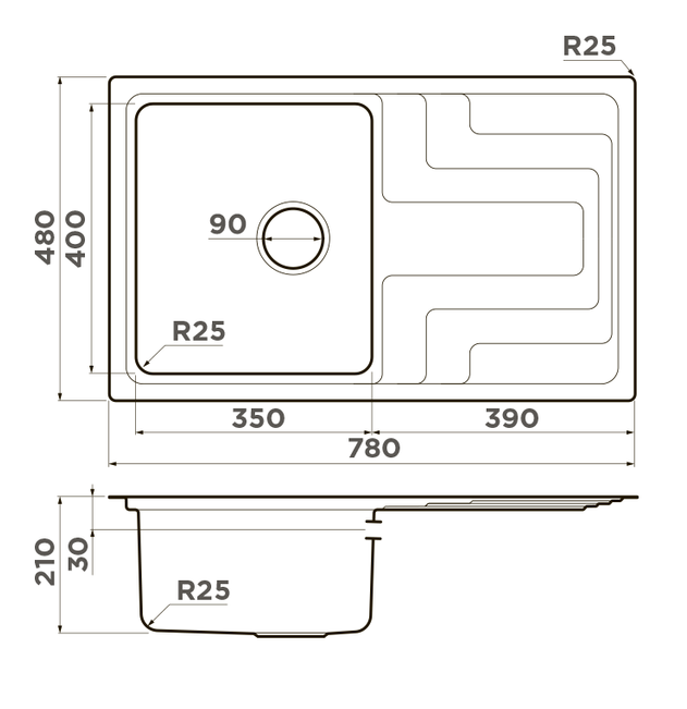 мойка, нержавеющая сталь, 780x480 мм, нержавеющая сталь