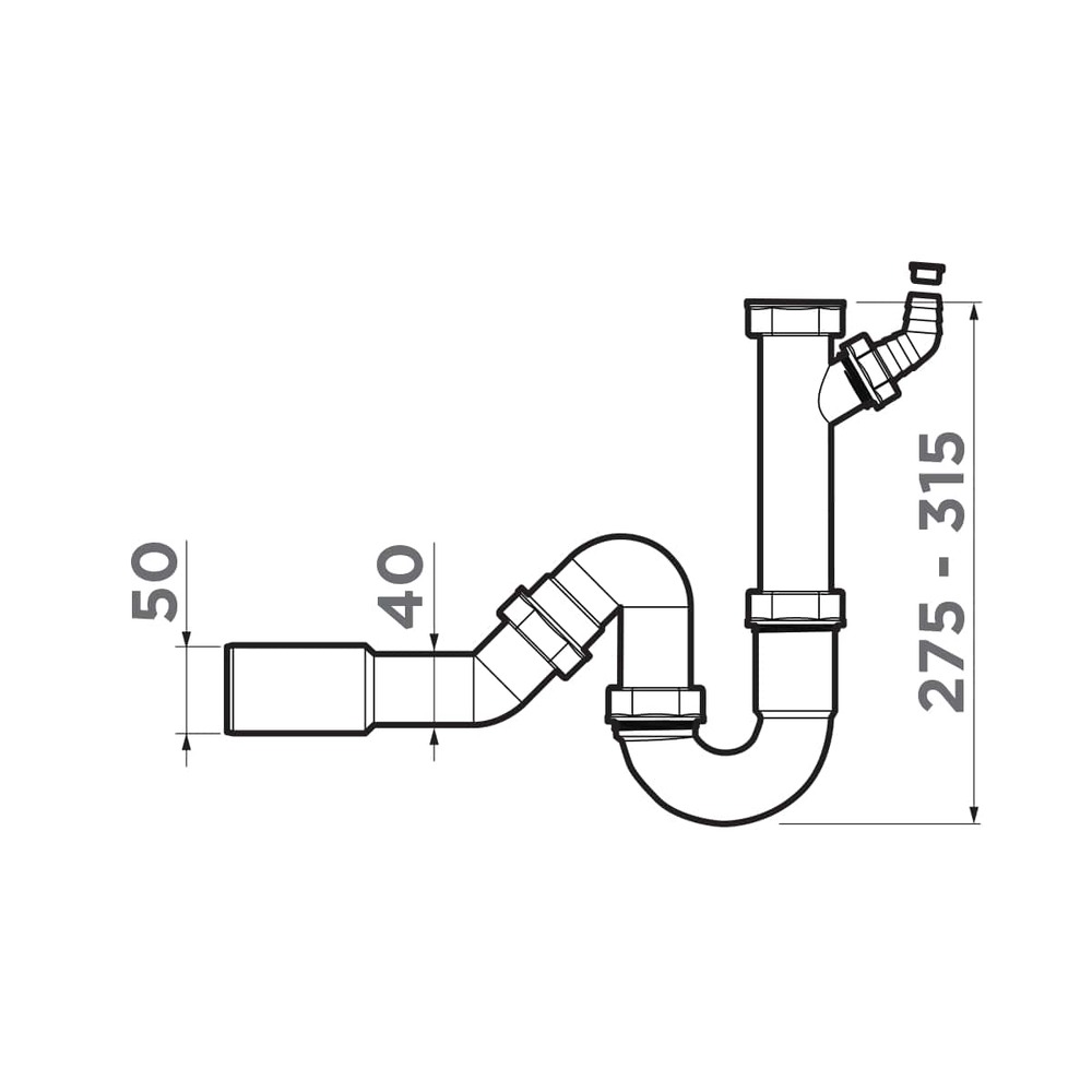 арматура для измельчителей пищевых отходов Nagare и Nagare SLIM, с гидрозатвором, подходит для одночашевых и двухчашевых моек, имеет дополнительный выход для стиральной или посудомоечной машины, цвет: серый