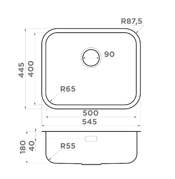 мойка, нержавеющая сталь, 545x445 мм, нержавеющая сталь