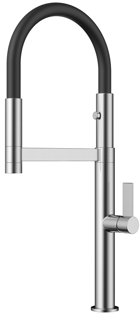 смеситель, латунь, высокий гибкий излив, нержавеющая сталь/черный