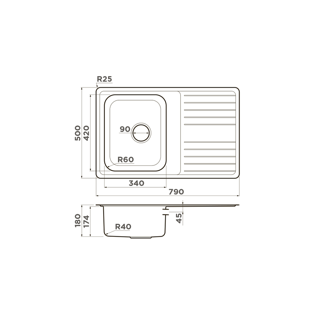 мойка, нержавеющая сталь, 790x500 мм, нержавеющая сталь