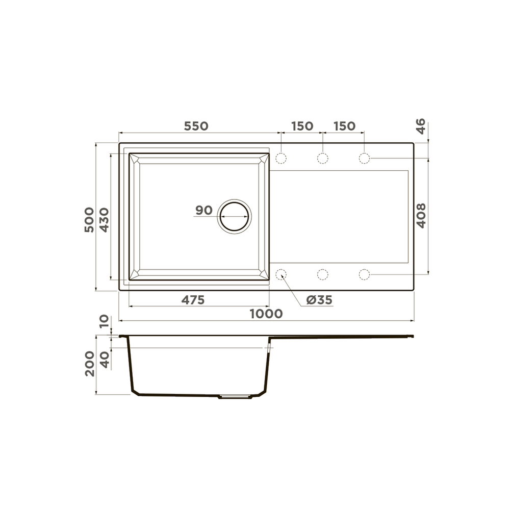 Расстояние от дна до верхней кромки чаши мойки. Оптимальная глубина — 15-18 см. Чем глубже мойка, тем меньше брызг попадет наружу.