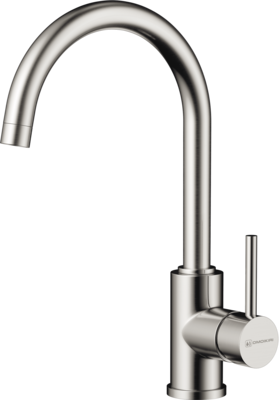 смеситель для кухни, латунь, высокий поворотный излив, нержавеющая сталь
