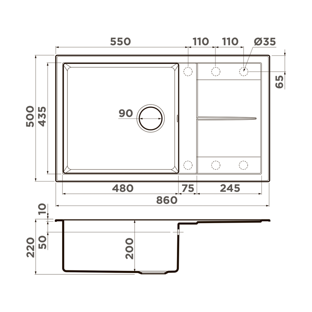 мойка, гранит, 860x500 мм, бежевый