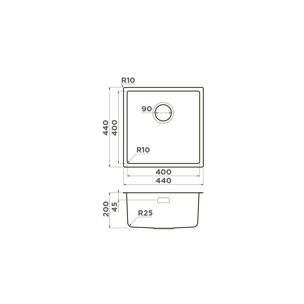 мойка, нержавеющая сталь, 440x440 мм, нержавеющая сталь
