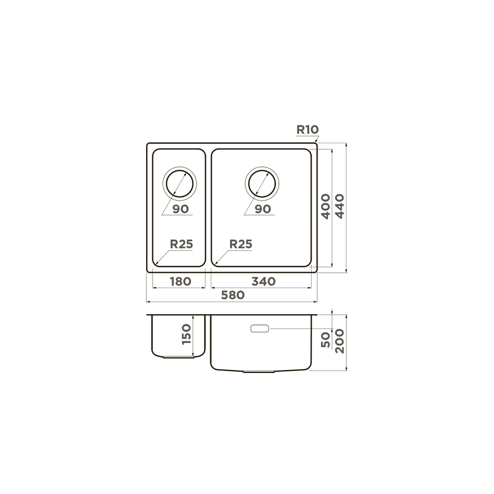 Расстояние от дна до верхней кромки чаши мойки. Оптимальная глубина — 15-18 см. Чем глубже мойка, тем меньше брызг попадет наружу.