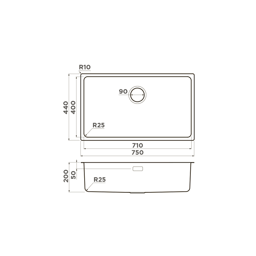 мойка, нержавеющая сталь, 750х440 мм, нержавеющая сталь