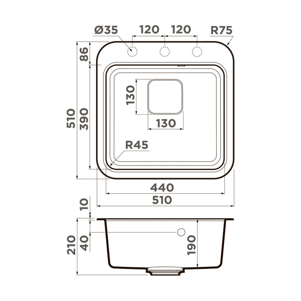 Расстояние от дна до верхней кромки чаши мойки. Оптимальная глубина — 15-18 см. Чем глубже мойка, тем меньше брызг попадет наружу.