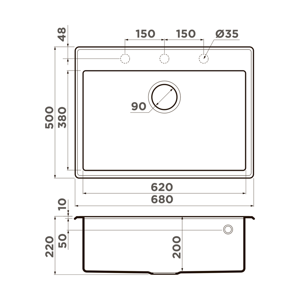 Расстояние от дна до верхней кромки чаши мойки. Оптимальная глубина — 15-18 см. Чем глубже мойка, тем меньше брызг попадет наружу.
