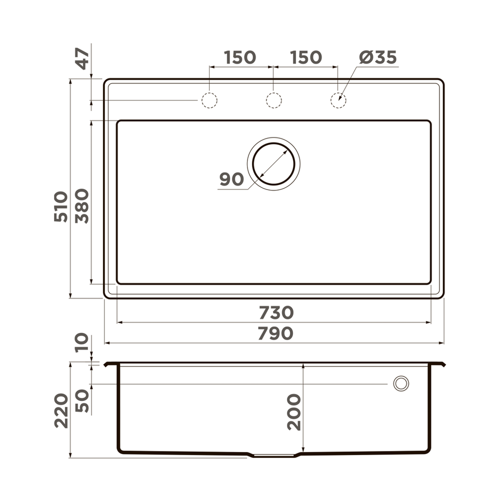 Расстояние от дна до верхней кромки чаши мойки. Оптимальная глубина — 15-18 см. Чем глубже мойка, тем меньше брызг попадет наружу.
