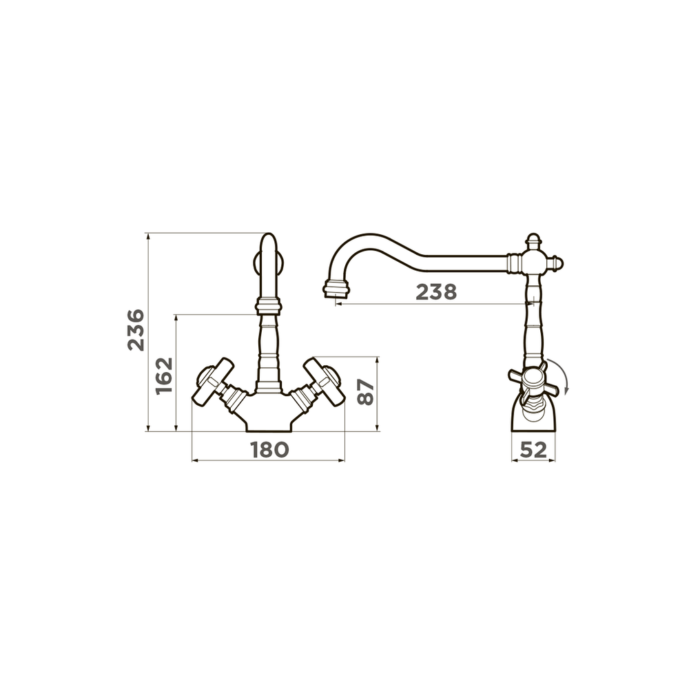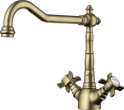 смеситель для кухни, латунь, высокий поворотный излив, античная латунь