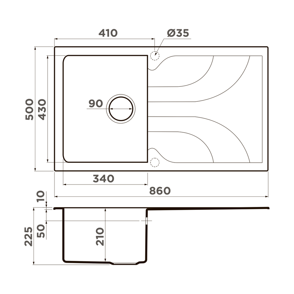Расстояние от дна до верхней кромки чаши мойки. Оптимальная глубина — 15-18 см. Чем глубже мойка, тем меньше брызг попадет наружу.