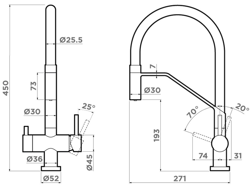 смеситель для кухни, латунь, дополнительный излив для фильтрованной воды, хром/черный