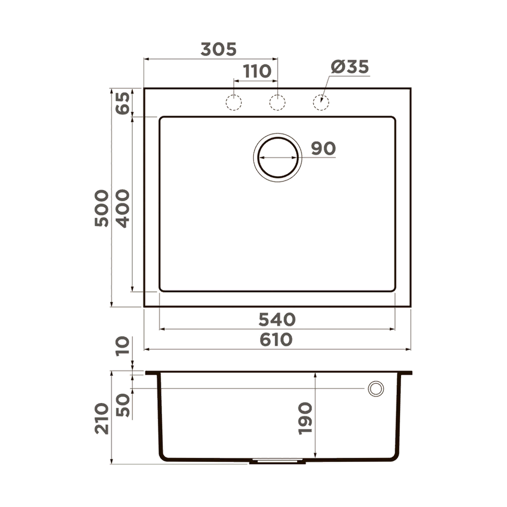 Расстояние от дна до верхней кромки чаши мойки. Оптимальная глубина — 15-18 см. Чем глубже мойка, тем меньше брызг попадет наружу.