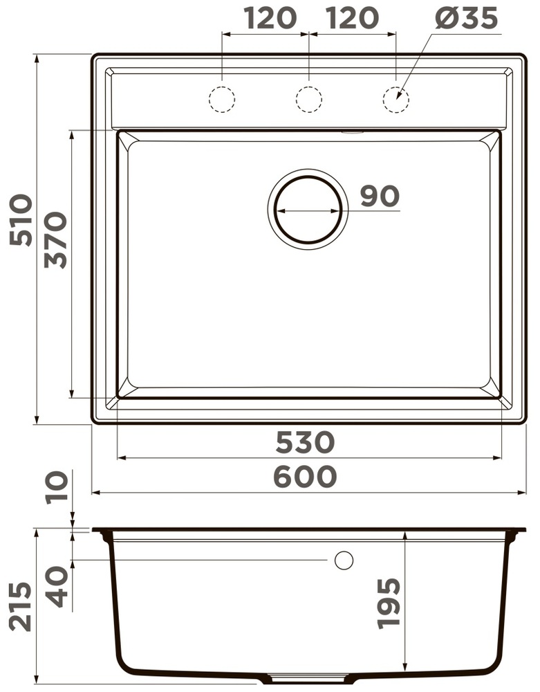 Расстояние от дна до верхней кромки чаши мойки. Оптимальная глубина — 15-18 см. Чем глубже мойка, тем меньше брызг попадет наружу.