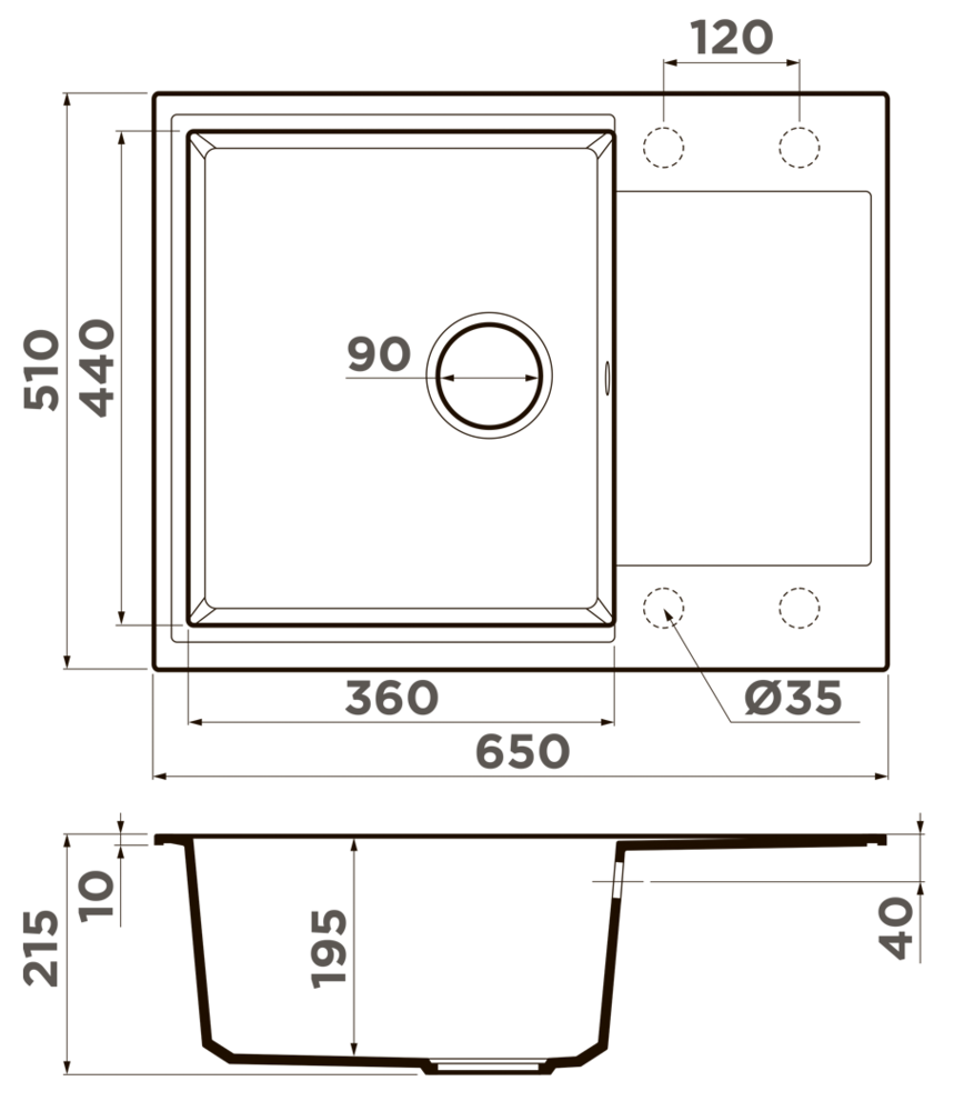 Расстояние от дна до верхней кромки чаши мойки. Оптимальная глубина — 15-18 см. Чем глубже мойка, тем меньше брызг попадет наружу.