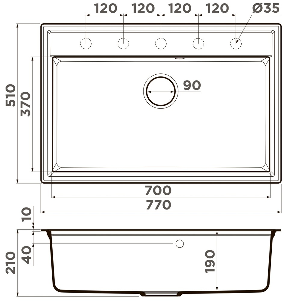 Расстояние от дна до верхней кромки чаши мойки. Оптимальная глубина — 15-18 см. Чем глубже мойка, тем меньше брызг попадет наружу.