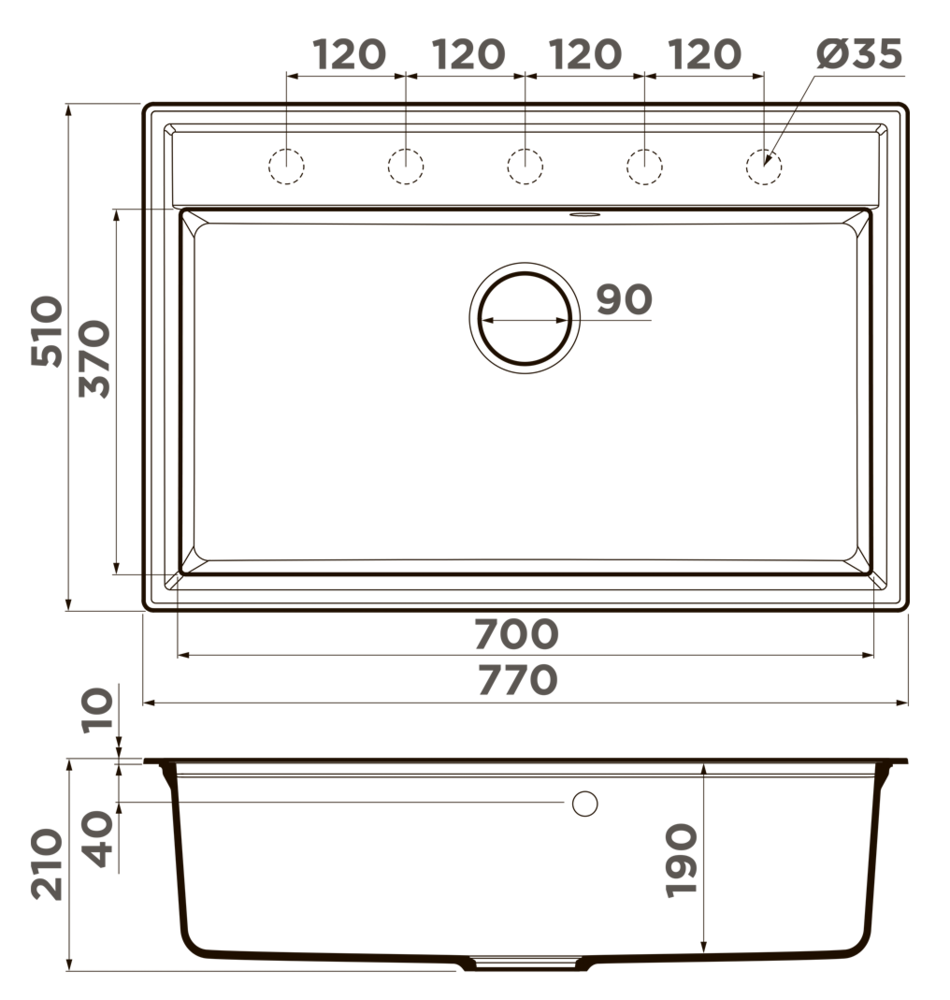 Расстояние от дна до верхней кромки чаши мойки. Оптимальная глубина — 15-18 см. Чем глубже мойка, тем меньше брызг попадет наружу.